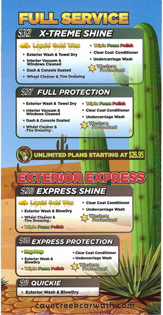 We strive to offer our customers the best products and services in a timely manner with customer service being our #1 priority. There are a variety of wash packages that include "express" drive thru, Full service, and detailing.